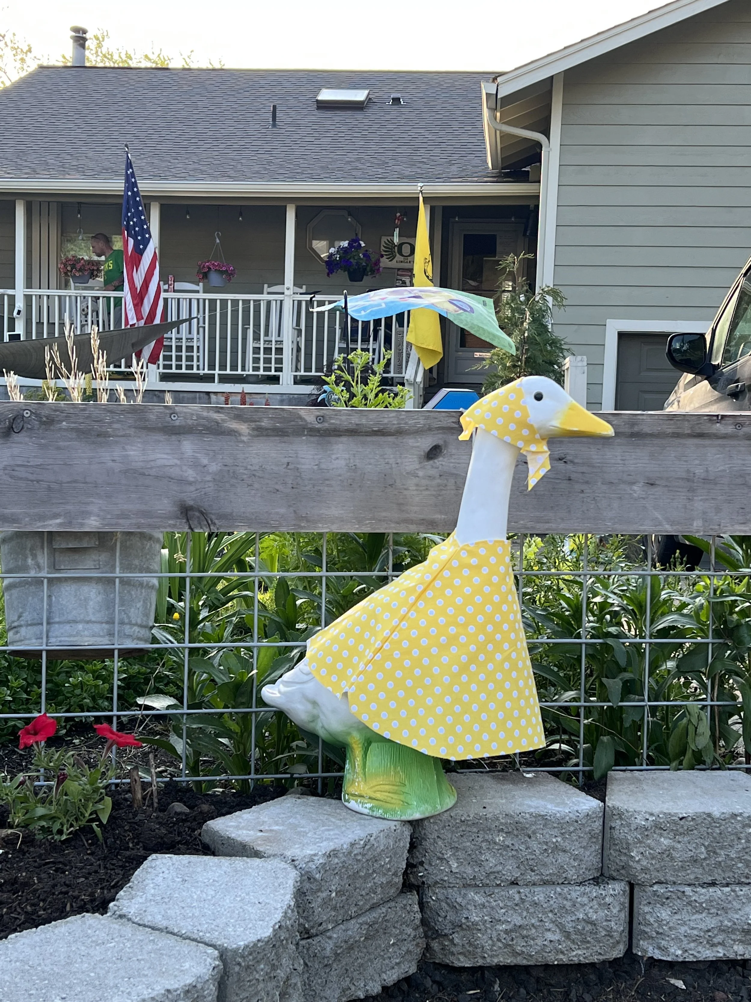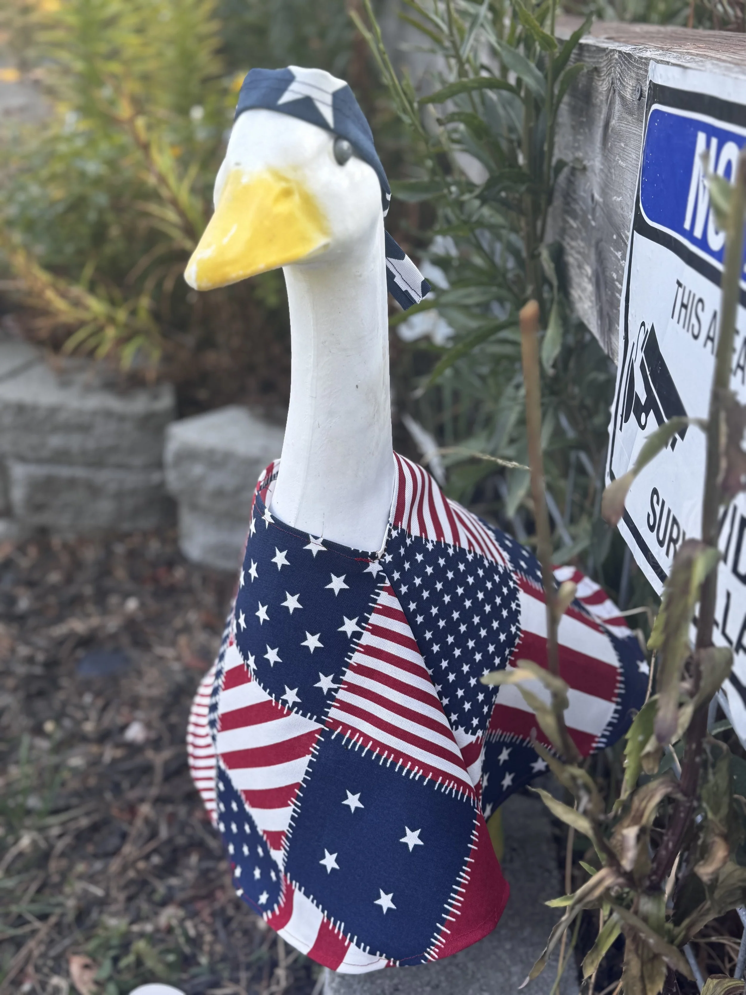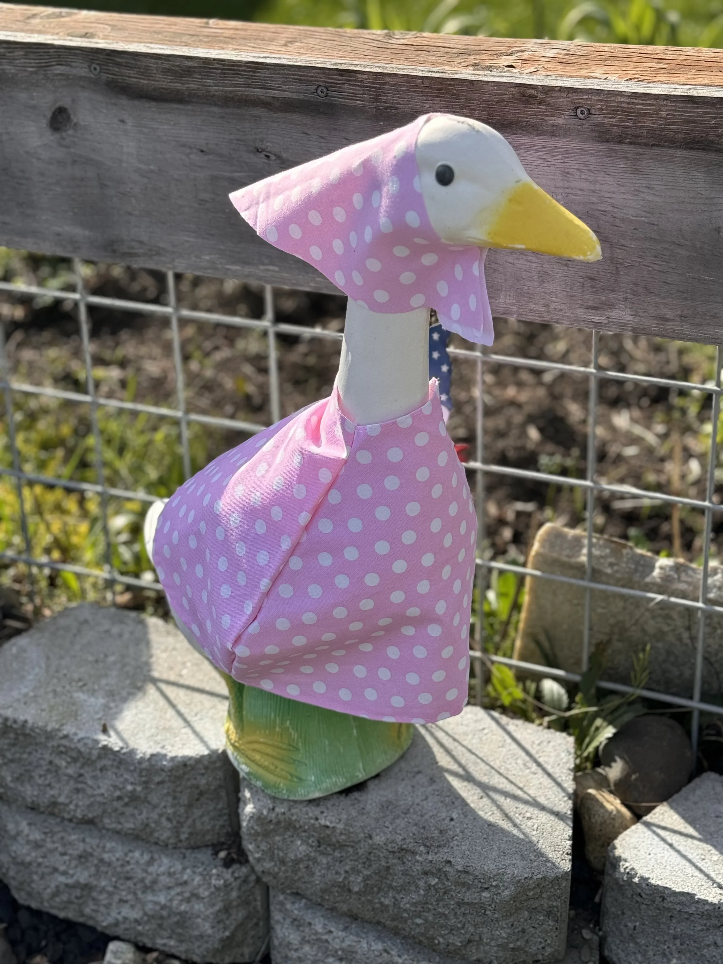 It is exactly what it says, I make custom goose clothing for your porch goose. If there is a material for it I can make it. I absolutely love my goose! She/he loves being a model for the clothing I make. Contact me for more details.